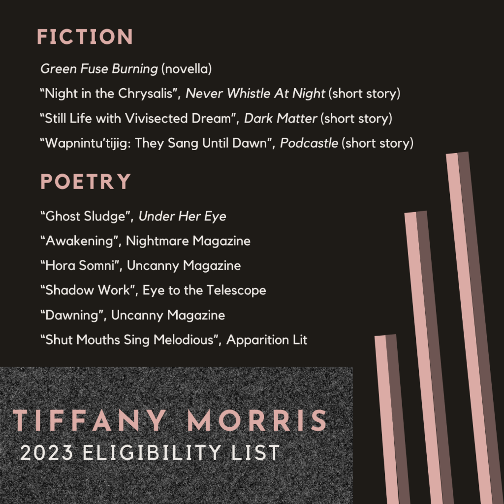 I’m so happy to share my 2023 works eligible for awards consideration! Links are as follows: